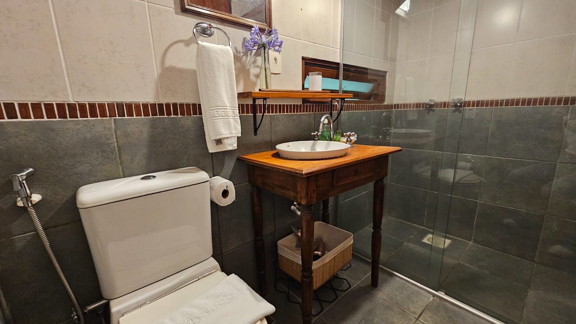 • Banheiro privativo, com aquecedor de água individual