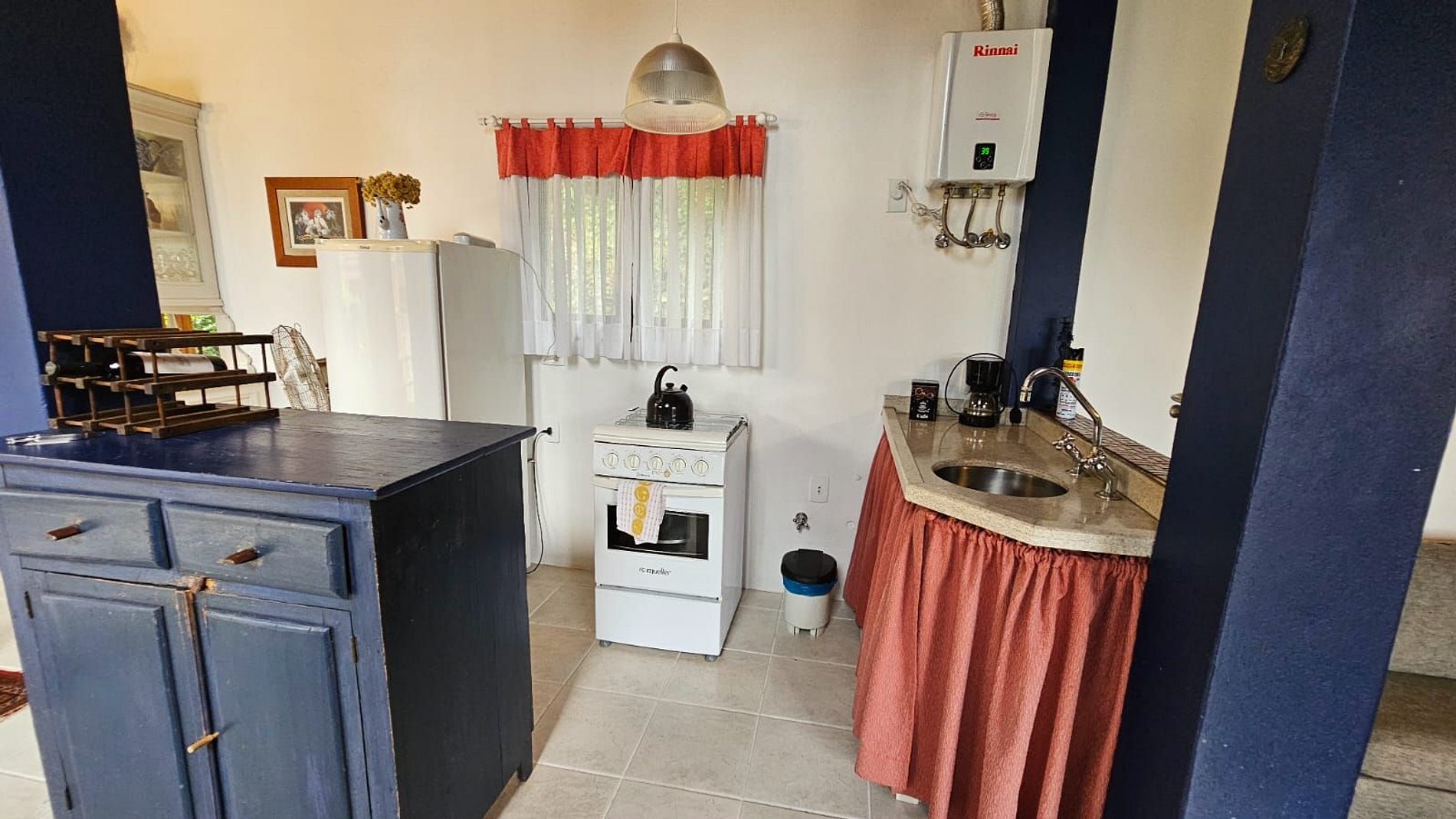 • Cozinha completa, com geladeira, fogão, panelas e utensílios básicos